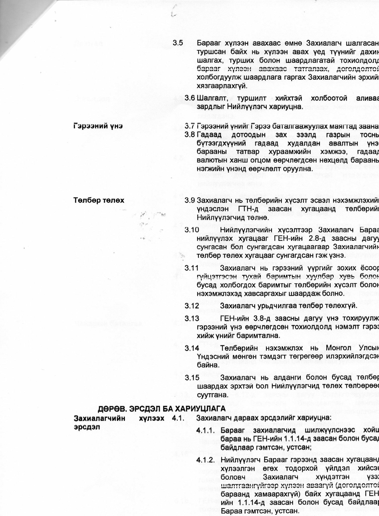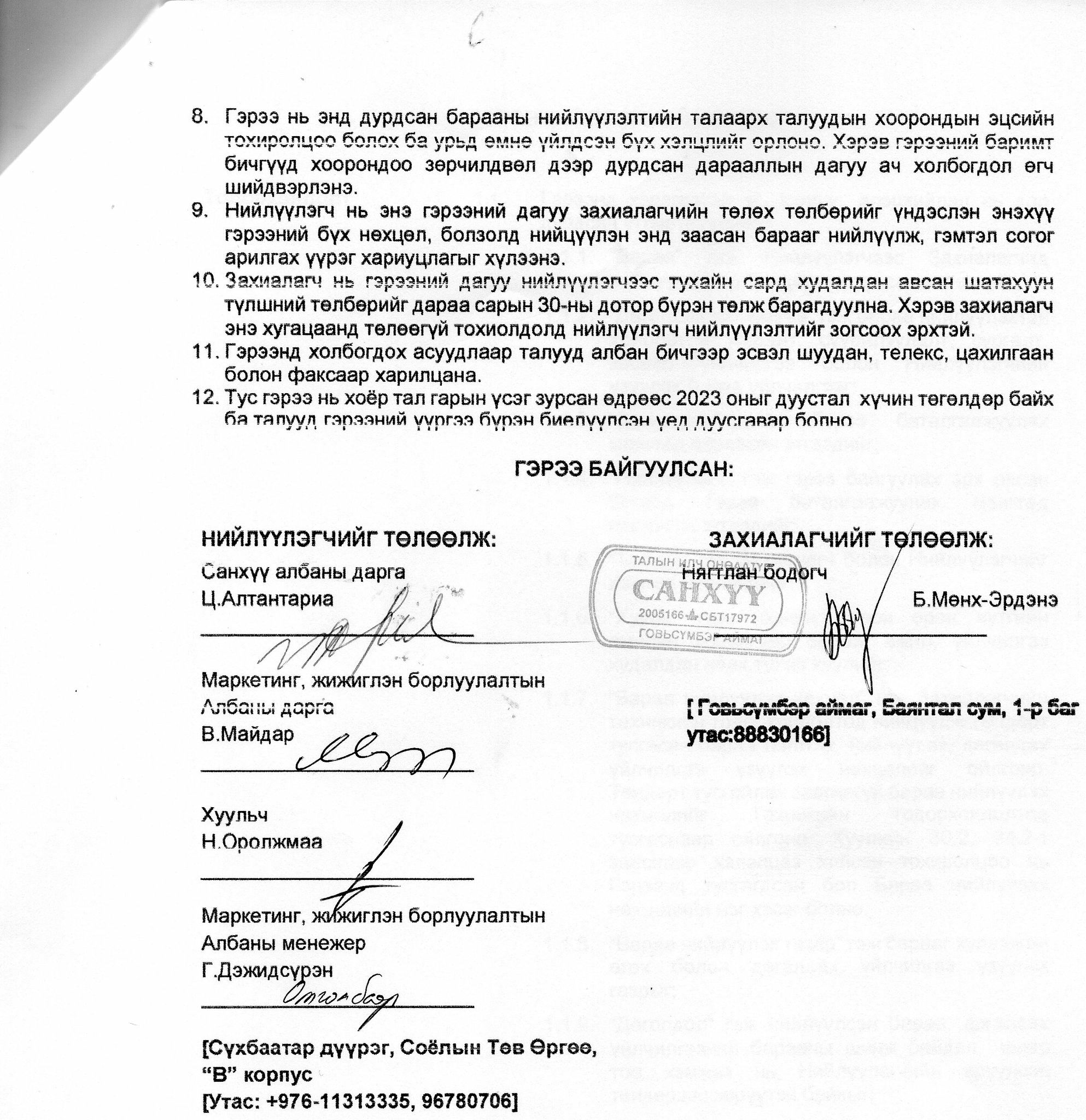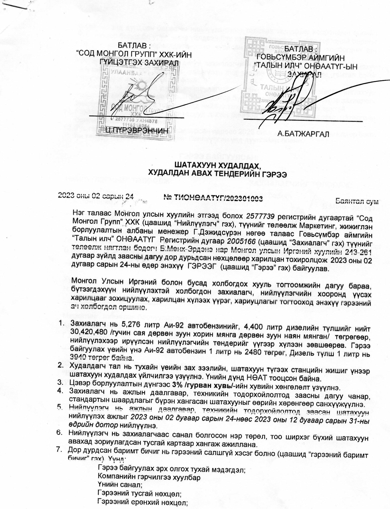 Шатахуун худалдах, худалдан авах тендерийн гэрээ